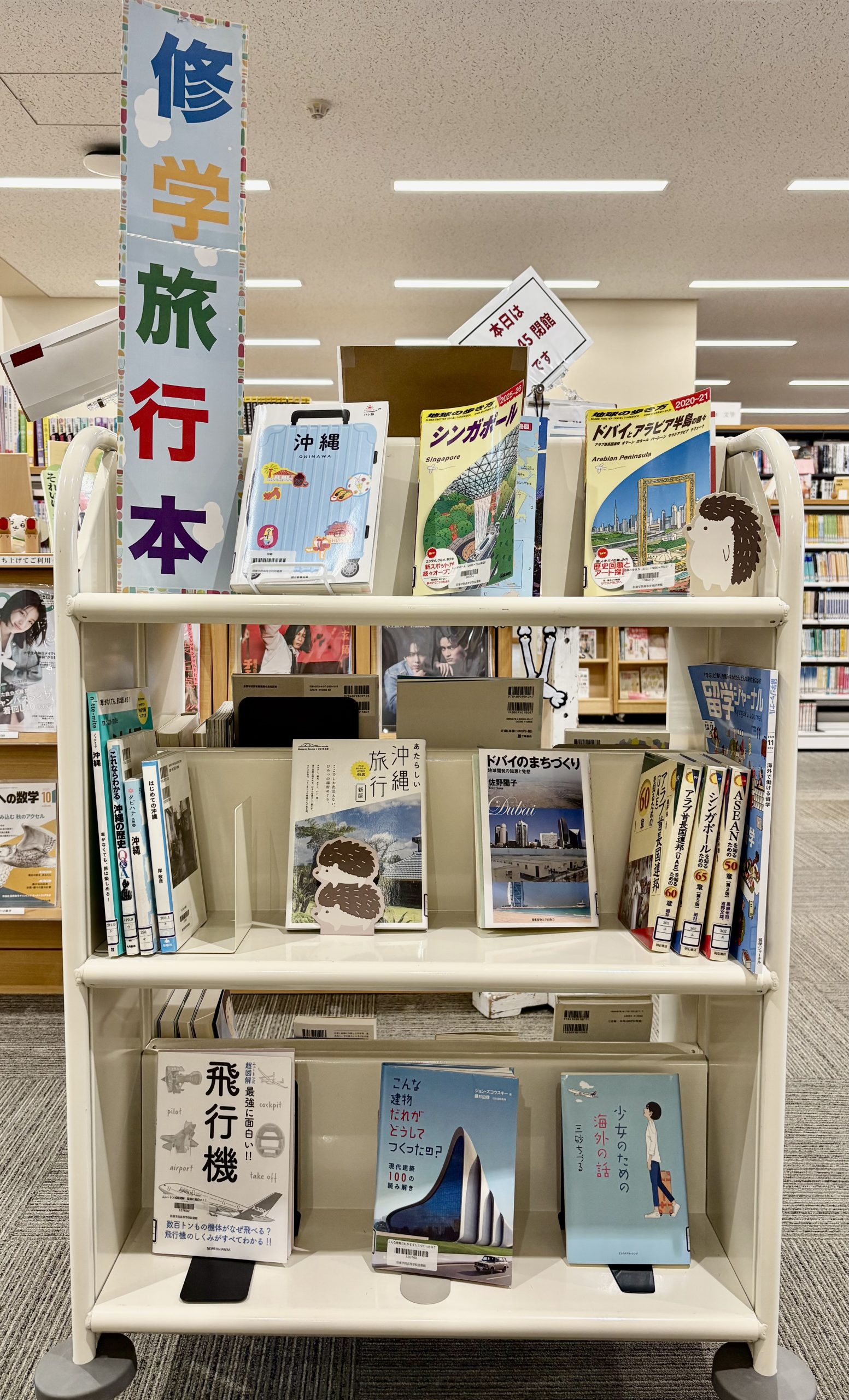*もうすぐ出発の修学旅行コーナー…ドバイ、シンガポール、沖縄の事前学習に。