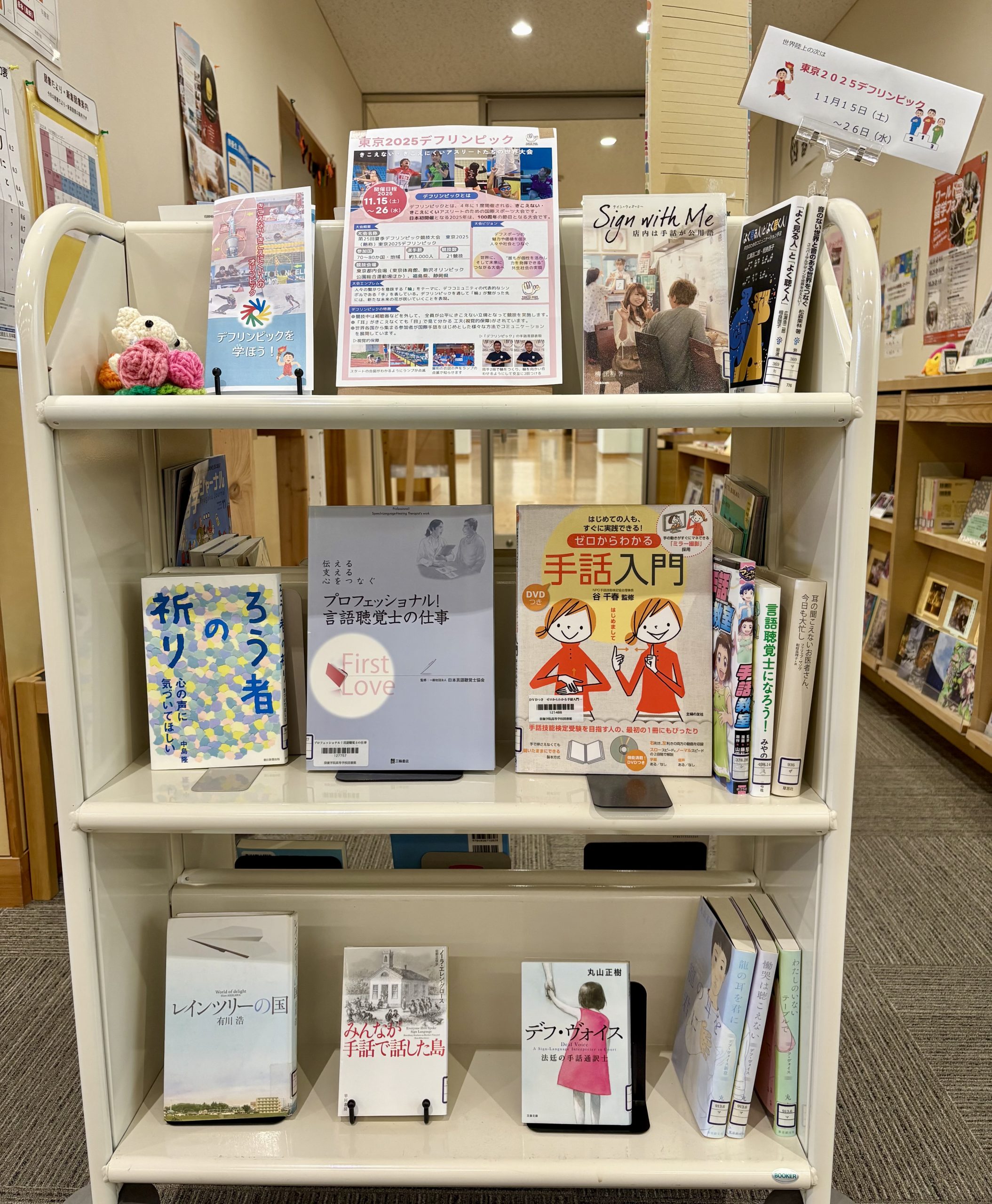 *デフリンピックコーナー…11月に東京で開催される「東京2025デフリンピック」。デフリンピックとは、聴覚に障害のあるアスリートを対象とした国際総合スポーツ競技大会です。関連本を集めてみました。