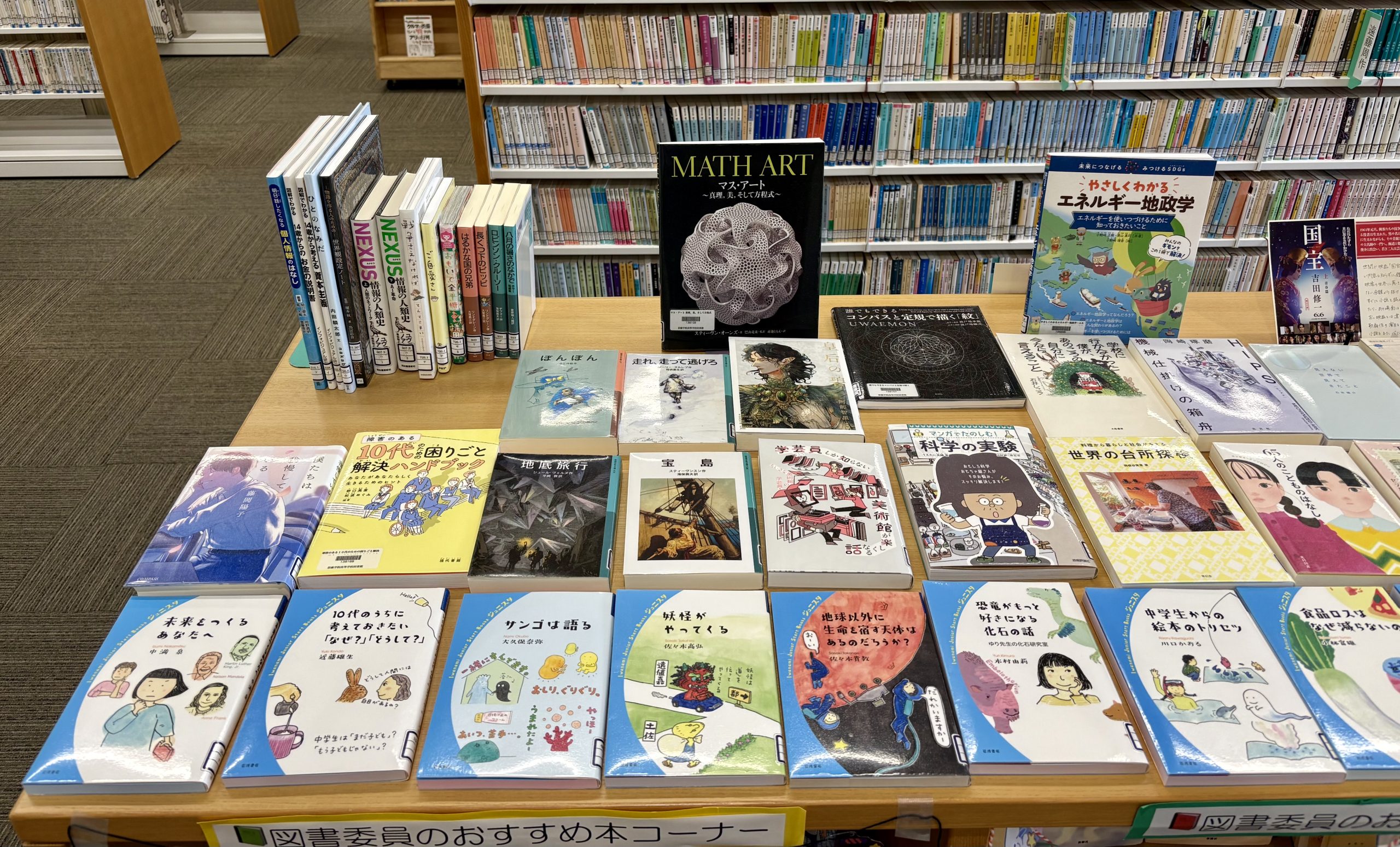 10月に入り、図書館は中間考査の勉強で自習をする生徒で連日満席でした。試験が終わっても行事などで忙しくなりますが、「読書の秋!」です。いろいろなコーナーを設けましたので、本を読んでみませんか。