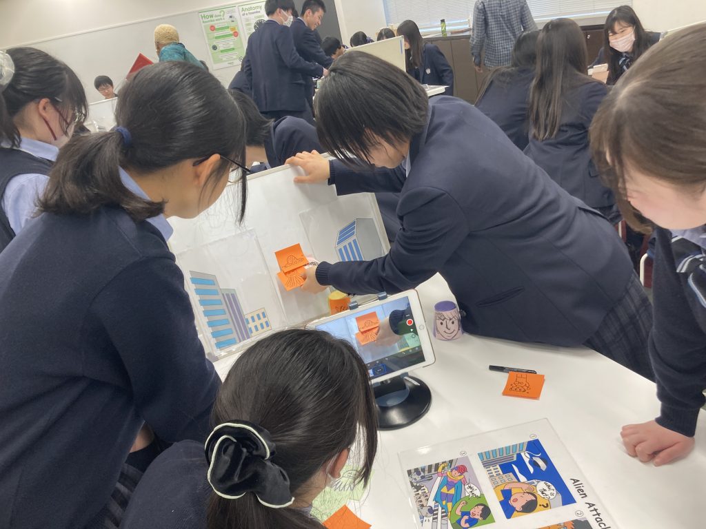 最初に自己紹介をするときは恥ずかしがっていた生徒も、先生方のおかけでリラックスしはじめ、グループごとに4つのプログラムを楽しそうにこなしていきました。積極的に英語を話す姿はとても頼もしかったです。最後は「See you」と言って会場を後にするなど、よい経験ができたのではないかと思います。